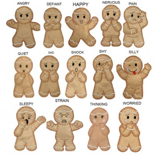 Delightful Gingerbread men each depicting an emotion they are feeling – spoken without words