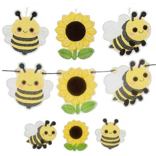 This Bee has been designed so that the stitches look like knitting – there is a plain back and it can be stuffed or left flat – there is also the option to make him into a banner piece